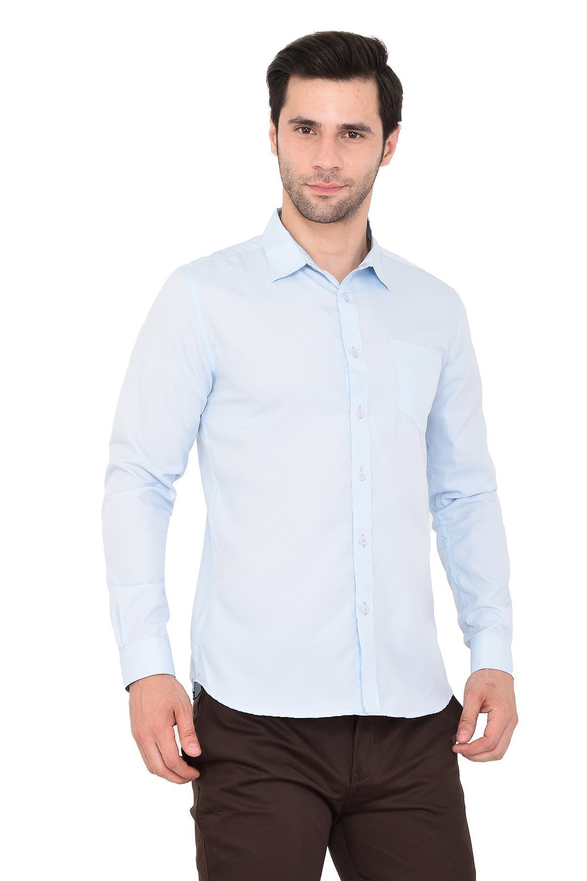 High Skyzz Casual shirt works perfectly with your workwear, sporty style or a casual hangout dress code, this Casual solid Sky Blue Shirt comes with a Spread collar, long cuffed sleeves, front buttoned closure with pockets. This super comfortable piece is perfect for adding a simple, yet stylish finishing touch to an array of looks.Pair this shirt with stylish Dark Brown Chinos or denim and a matching watch for a complete casual look for a casual event, a party or an evening with friends.